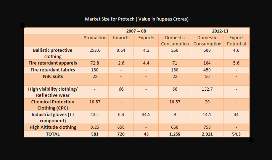 Indian Defence Forces with a total strength of around 1.5 million individuals comprising the army, navy and air force, is one of the largest consumers of protective textiles. Approximately 25-30 % of the troops is involved in high risk, counters insurgency & special operations in super high attitude areas and requires protective clothing. In addition, around 1.2 million individuals are present in paramilitary forces and other security forces.